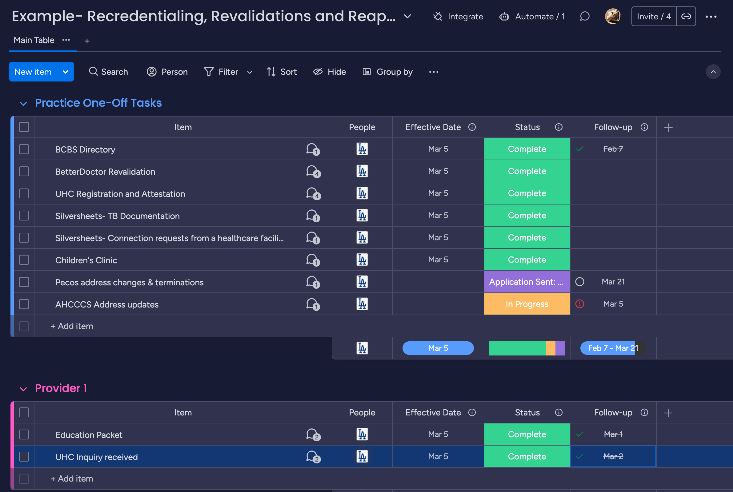 We track recredentialing timelines and due dates for each payer to make sure each provider is recredentialed without any gaps in network states.